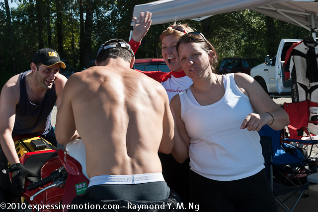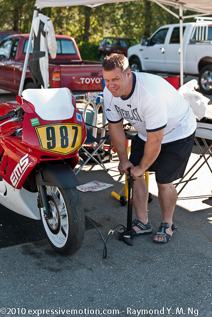 Hello Racers and Racing Fans, I am sorry for the long wait. I have been very busy with work and been taking time in optimizing our (Sandy's and My) racing pictures for superior quality in detail. I hope this pays off. This is only the Race #6 only. I hope to get Race #7 done in a week. I understand there has been numerous requests for our pictures. Sandy and I will do our best to note your Racing Number and get more pictures of you and your bike. Please be patient. Here are some pictures which caught my eye on that day. Note: Some of the picture comments are pure sarcasm. :jk::jk::jk: The wake of racing day... the smell of coffee and gasoline, a complete racer's breakfast. Some racers showing off at the paddock of #987 and #911. What is Michelle and Nancy excited about? Got to keep those tires well pumped! Spero is extremely focused on getting Michelle's bike right! Ken seems really awake for his upcoming race. Lightspeed! Ken does a wheelie over the finish line. Ken gets congratulated by Doris. In memory of Gerhard & Doris Walther's son.