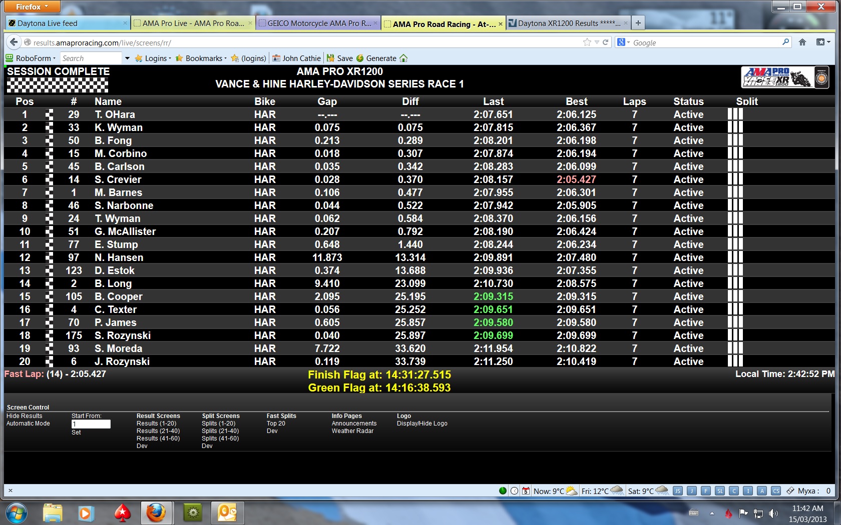 ***************** SPOILER ****************** Crevier finishes 6th after leading Lap 3. Set fastest lap time for the race.